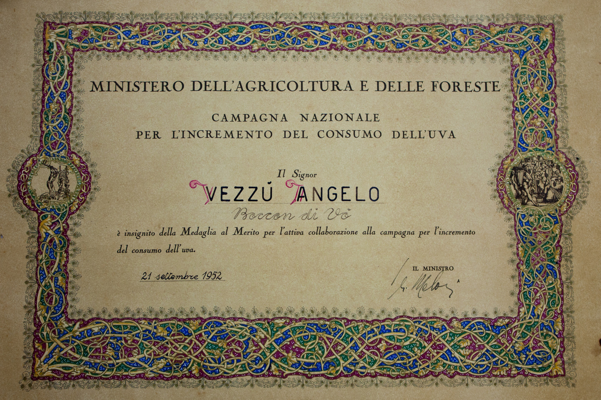 Successivamente l’uva veniva pigiata a piedi in grandi tini di legno e il mosto lasciato fermentare in recipienti aperti. Il vino prodotto era destinato principalmente alle osterie di Padova e provincia, mentre solo una parte restava per il consumo familiare.